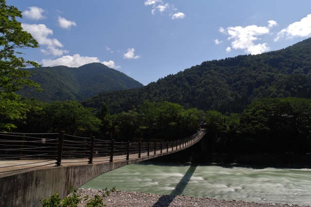 白川郷の合掌造り集落を訪れる際、多くの観光客が最初に渡るのが「であい橋」。庄川に架かるこの美しい吊り橋は、集落と駐車場を結ぶ白川郷の玄関口ともいえる存在…